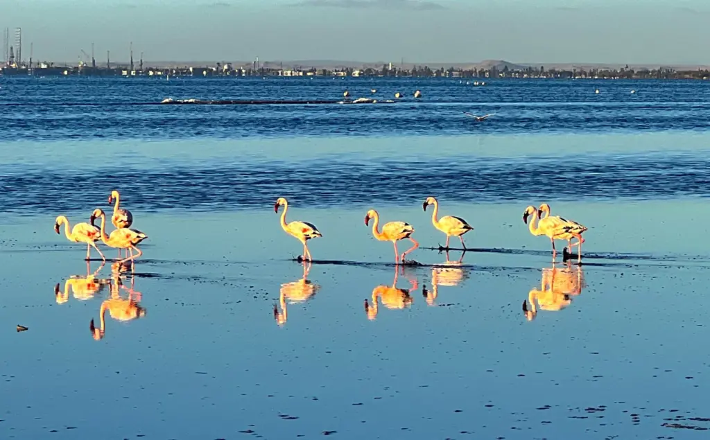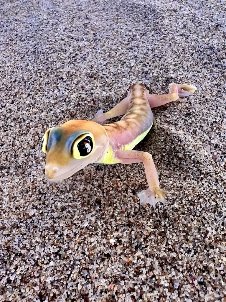 Sandwich Harbour is not empty, either. This coastline and dune belt has its own odd little specialists, including the Namib web-footed gecko, a small pale-pink desert creature that thrives in loose sand and coastal dunes. You also get flamingos out on the shallows and around the salt pans, plus those pink-toned pools and flats that make parts of the place look half natural, half slightly unreal. It may all look slightly AI-generated, but it is very much real.