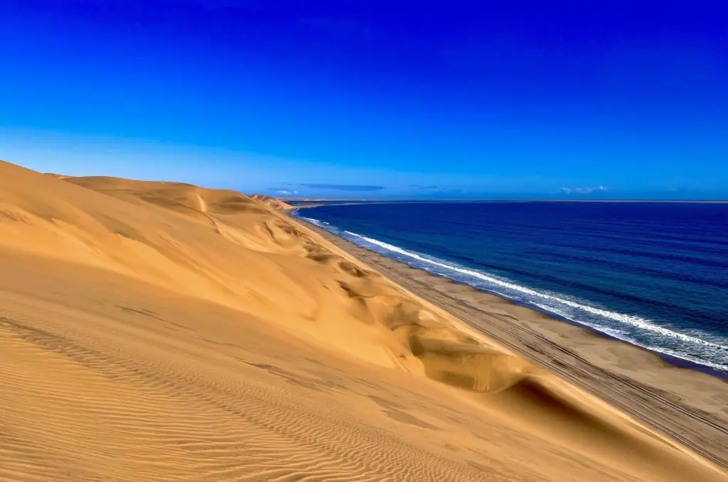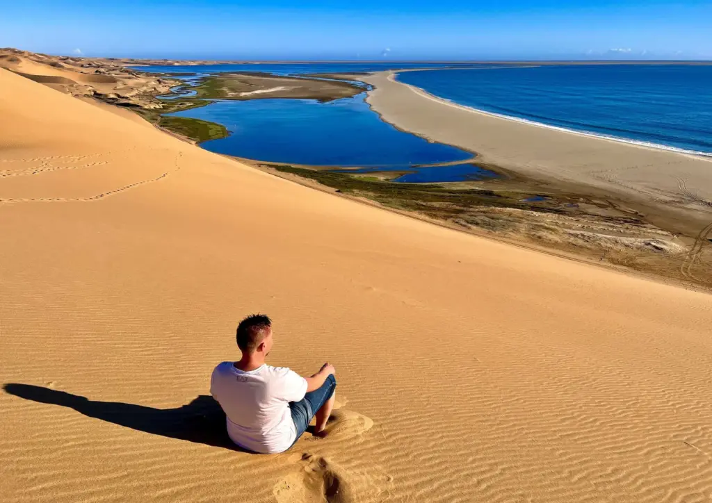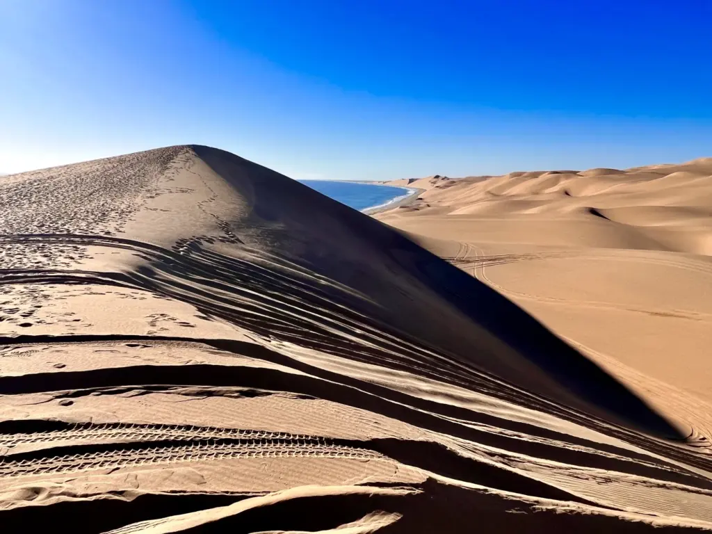 Then there is the climbing. From below, the dunes look manageable enough. From halfway up, they start returning your effort back downhill. By the time you reach the top, you feel it properly, but for real, the views from there make it worthwhile. The ocean and the dunes spread out below, and there is enough open space to make most countries look a bit overcrowded. Namibia averages only about three inhabitants per square kilometre, which does explain some of that.